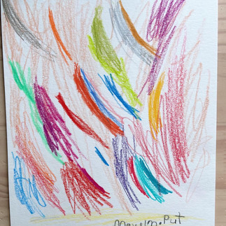 The kids and I made some abstract art recently. Rosie and I chose to make mini-mixed-media pieces - we started with pencil crayons and then added some gouache afterwards. We used little square pieces of thick, watercolour paper, and masking tape to leave a nice crisp border. Malcolm used many different pencil crayons to make a colourful piece.